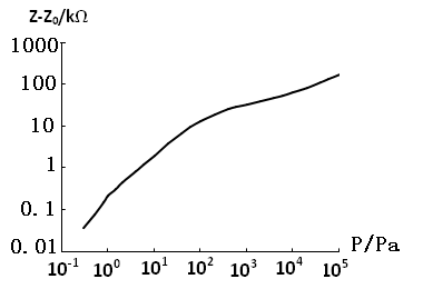 石英真空计的工作原理是应用石英晶振在谐振时谐振阻抗的变化Z-Z0与气体压强有关的特性。Z为晶振在被测气体压强的谐振阻抗,Z0为晶振的固有阻抗,它是在气体压强为零时的谐振阻抗。