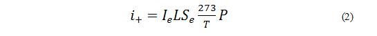 式中:P——气体的压强,T——气体的绝对温度, 气体的电高效率,即一个电子通过单位气体压强,温度为0℃,运动一厘米路程所产生的离子对数。